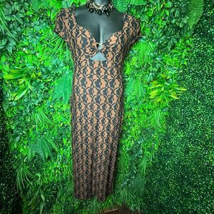 Derek Heart Women Medium Brown Black Dress Long Maxi Floral Print Cut Out 0653
