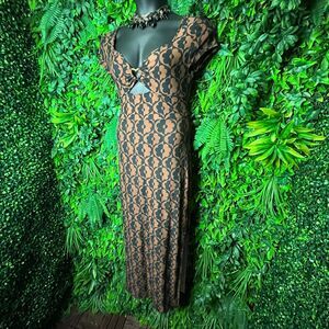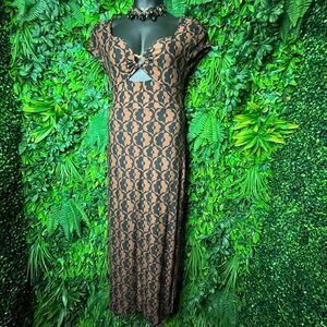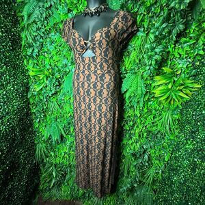 Derek Heart Dress Women Medium Brown Black Long Maxi Floral Print Cut Out 0653