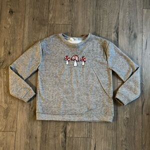 Derek Heart Embroidered Mushroom Love Sweatshirt Crewneck Small