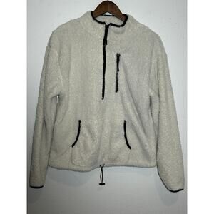 Derek Heart Fleece Jacket White With Black Half Zip Size M