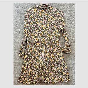 Derek Heart Floral Dress Long Sleeve Ruffle Bottom Button Up Front Large