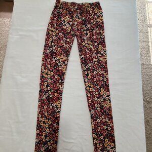 Derek Heart Floral Leggings Size 10 Black Red Yellow Stretch Pants Polyester