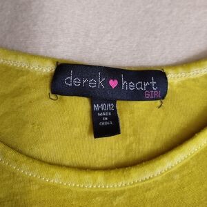 Derek Heart Girl M 10/12 yellow- almost chartreuse- sheer slub knit 3/4 length sleeves ruffled tunic/top/dress. 53% Cotton/47% Polyester. Crossposted