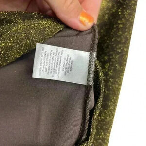 Derek Heart Gold Sparkly Long Sleeve Cropped Top Side Ruching Women Size Medium