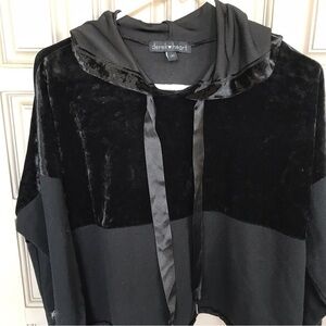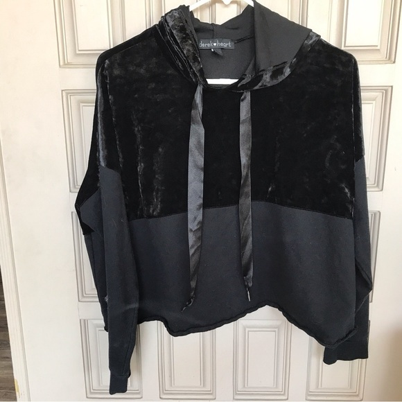 Derek Heart Hoodie SzL Velour/Cotton Contrast Ribbon Drawstring Cropped Lt Weight