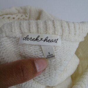 Derek Heart Ivory Cropped Sweater Top Women Size S Long Sleeve Open Knit FLAW