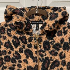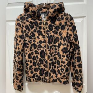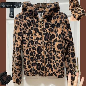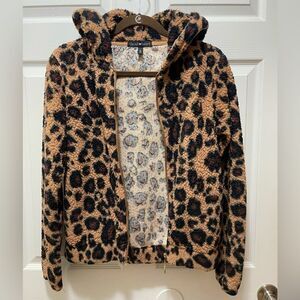 Derek Heart Jaguar Leopard Print Hoodie Jacket Fleece Cat Preppy Cute Size S