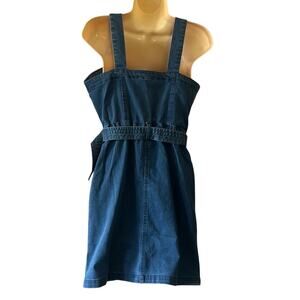 Blue stretch denim button front dress with belt