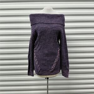 Derek Heart Juniors Sweater Size Large Purple Off Shoulder Cable Knit Cozy Knit