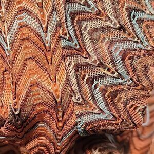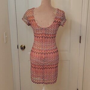 Very pretty Derek Heart Lightweight Knit overlay dress in a tight chevron pattern. Gorgeous coral, taupe and blue hues are perfect for spring! Dress has a coral colored lining. Size Jr. M (Fits Tight on a size 6 mannequin). A lot of dress for the price! Even prettier in person! NWOT. Never worn!