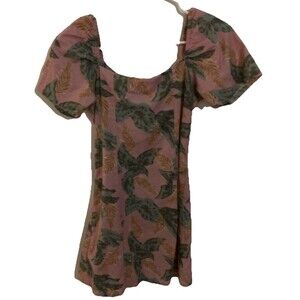 Derek Heart L Pink Flowered Dress Knee Length Midi Drawstring