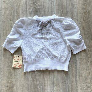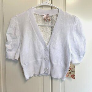 Derek Heart Lace Back Cropped Cardigan Short Sleeve Button Y2K White Sz Large L