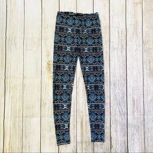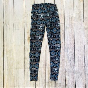 Derek Heart Junior's Full Length Leggings Blue Geometric Print Stretchy Sz Small: