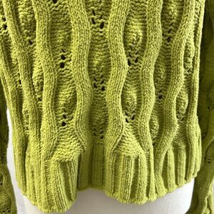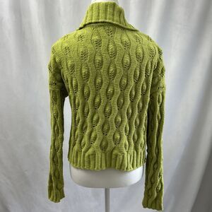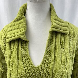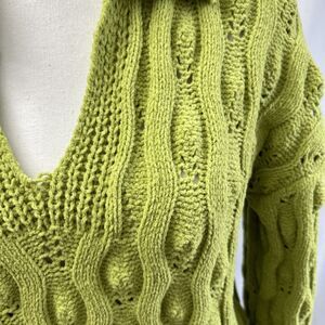 Derek Heart Lime Green V-Neck Collared Crop Sweater Open Knit - Size Small