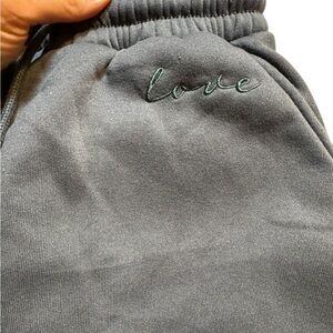 Derek Heart shorts, love embroidered shorts, gray lounge shorts, women’s drawstring shorts, athletic casual shorts, comfy loungewear, size small shorts