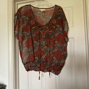 Chic paisley blouse with vibrant colors. Lightweight and stylish. Perfect for any occasion.