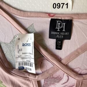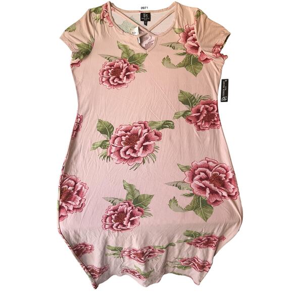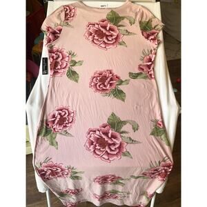 Derek Heart Plus Women Maxi Dress Plus 2X Pink Floral T-Shirt Dress Short Sleeve