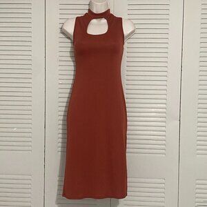 Derek Heart Rust Cutout Bodycon Midi Dress Size Small Sleeveless High Neck Sexy