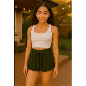 Derek Heart Small Green Ruffle Hem Shorts Waist Tie Belt Casual Boho Summer Chic