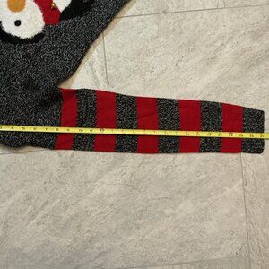 New condition. Super soft V-neck sweater hoodie, black and white marled with red stripes on sleeves and back. Adorable penguin with 5 functional bells, slight tinkling sounds not overtly annoying!