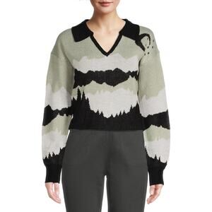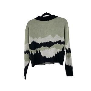 Derek Heart Sweater Juniors Large Pullover Sage Jacquard Johnny Collar Crop NWT