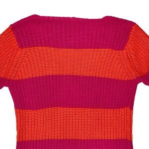 - Description: Derek Heart Sweater Womens M Pink Orange Striped Vibrant Chunky Knit Cozy Winter