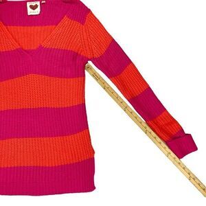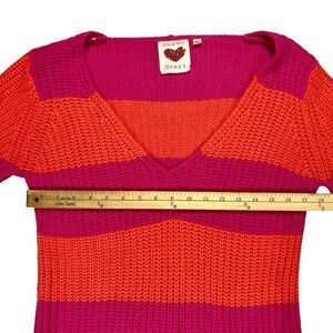 Derek Heart Sweater Womens M Pink Orange Striped Vibrant Chunky Knit Cozy Winter