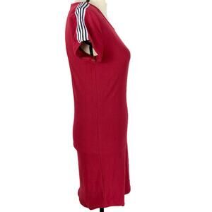Derek Heart T-Shirt Dress Red Short Sleeve Knee High w/ Shoulder Stripe Medium
