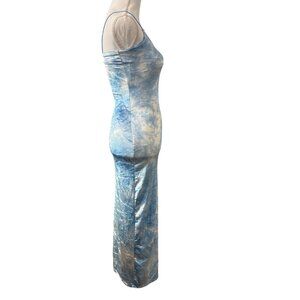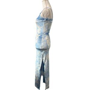 Derek Heart Tie-Dye Spaghetti Strap Maxi Dress Blue & White Side Slit Size S