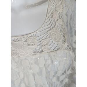 Derek Heart Top Sheer Lace Peplum Hem White Flutter Sleeve Woman's Size Medium