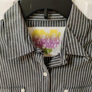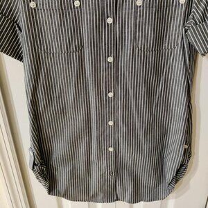 Derek Heart Women's Grey White Striped Button Front Tunic Top Blouse Size Medium