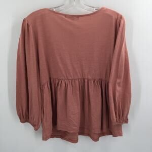 Derek Heart Women's Knit Lace Trim Peasant Blouse Long Sleeve Maroon Large NWT