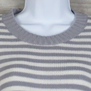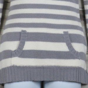 Pre-Owned, Excellent Condition! 100% Acrylic. Gray & White Knit/Crochet Sweater, Ribbed Collar, Hem and Sleeve Cuffs With Pocket Warmer.