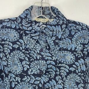 Derek Heart Womens Shirt M Blue Paisley Button Up Long Sleeve Polyester Retro Shipping ( in 1 business day.)