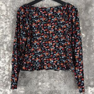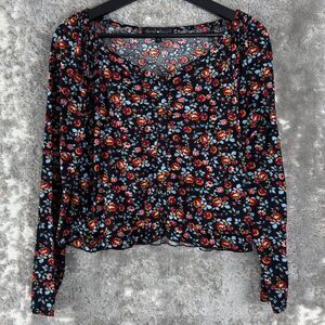 Derek Heart Womens Size L Cropped Floral Top Long Sleeve Stretch Pullover