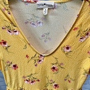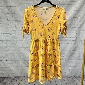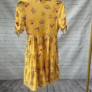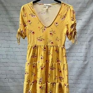 Derek Heart Women's Yellow Floral V-Neck Dress Size S