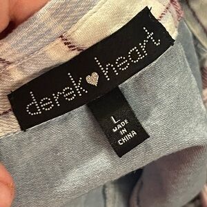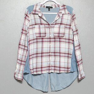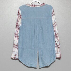 Derek Heart cotton red white plaid chambray denim back button up hi low shirt
