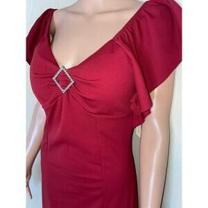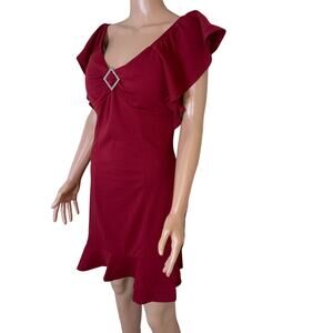 Derek Heart dress flutter sleeve deep rose red NEW knee length Rhinestone SZ L