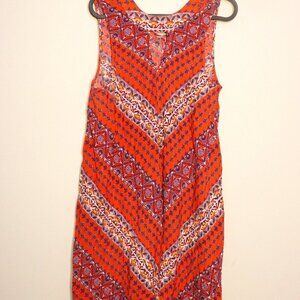 Derek Heart ummer A line dress, orange blue, and black abstract print, L
