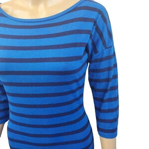 Derek Hearts Brand Blue/Navy Blue Stripe 3/4 Sleeve Tshirt Dress Size Small