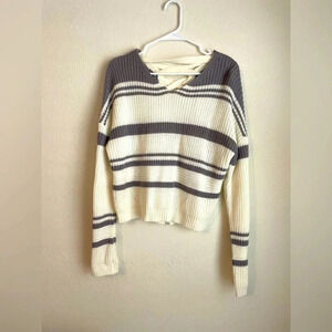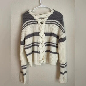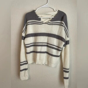 Derek Hearts grey and white acrylic sweater with cross back size L