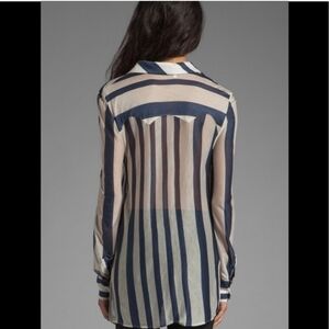 This effortlessly chic 10 Crosby Derek Lam blouse sports bold midnight stripes on an easy draped silhouette.