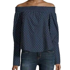 Derek Lam 10 Blue Clip Dot Off The Shoulder Top Size 4