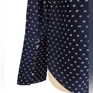 This beautiful Derek Lam 10 Crosby top is perfect for any occasion. The off-the-shoulder neckline and smocked features add a touch of bohemian style, while the pullover closure and long sleeves make it a versatile piece for travel, party, or casual wear. The blouse is made of high-quality cotton material and features a clip dot pattern in blue color, with button accents and a casual sleeve type. It is recommended to dry clean only to maintain its beauty. This top is available in women's size 4.