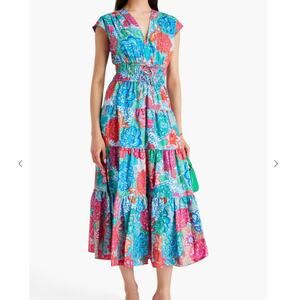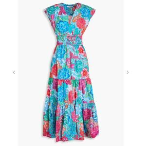 Derek Lam 10 Crosbey Fatima Tiered Floral Print Poplin Midi Dress Size 2