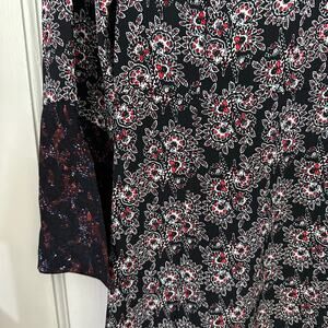 Derek Lam 10 Crosby 100% Silk Rocco Printed Dress Floral Bell Sleeve Black Red