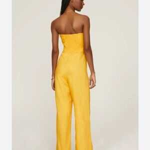 Derek Lam 10 Crosby Alene Yellow Strapless Wide Leg Jumpsuit Tie-Front Sz 4