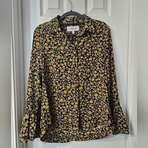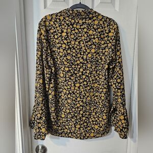 Derek Lam 10 Crosby Bell Sleeve Black Gold Floral Button Blouse
