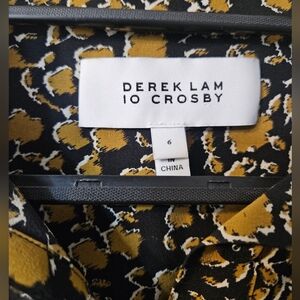 Derek Lam 10 Crosby 100% Silk Bell Sleeve Black Gold Floral Button Blouse Size 6