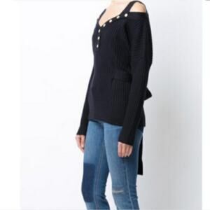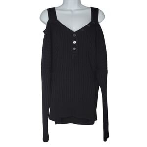 Derek Lam 10 Crosby Black Cold Shoulder Wool Blend V-Neck Sweater NEW Small